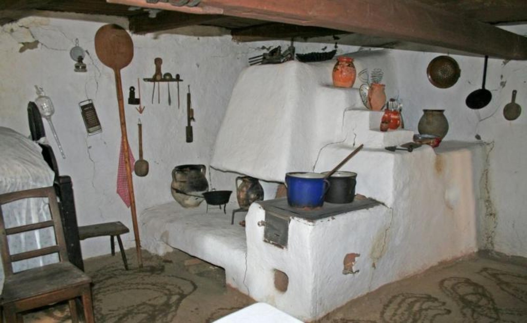 A szoba berendezéséhez tartozik a két karosláda is, melyek 1888-ban ill. 1895-ben készültek Sátoraljaújhelyen, jellegzetes festett bútorok. A szoba közepén nagyfiókos asztalt, a két ablak között komótot, egyik ill. másik sarokban magasra vetett koronás végű 1895-ben, ill. egy alacsonyabbra vetett 1900-ben készült ágyat találunk még. Üvegpoharak, keménycserép csészék, sárospataki tálak, cseréplábas, drótozott szilke , öntösvas fazekak idézik az egykori tulajdonosok használati tárgyait. Találunk itt feszületet, máriapócsi képet, szentképeket, világháborús emlékképet, családi képeket. A lakóház pitvarát fallal kettéosztották, a szabadkémény alatti részt tárolóhelyként, kamraként használták.