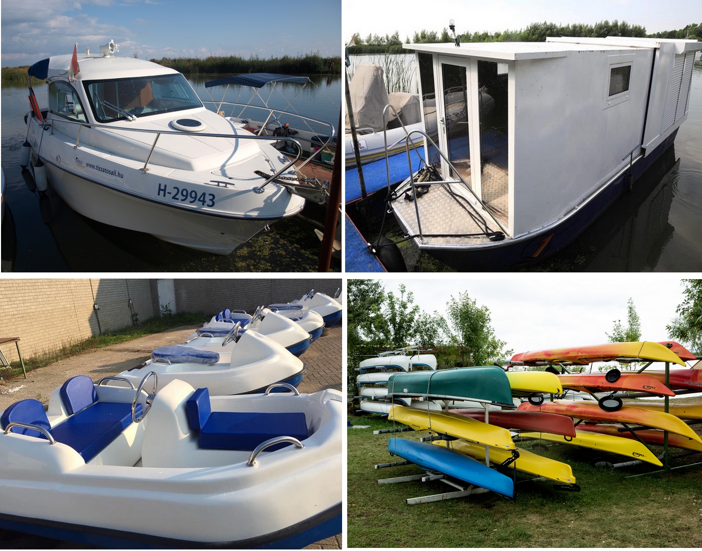 A S.Port Vízibázis eszközparkjában a következő „vízenjáró” szerkezetek, sporteszközök, vízijárművek bérelhetők: