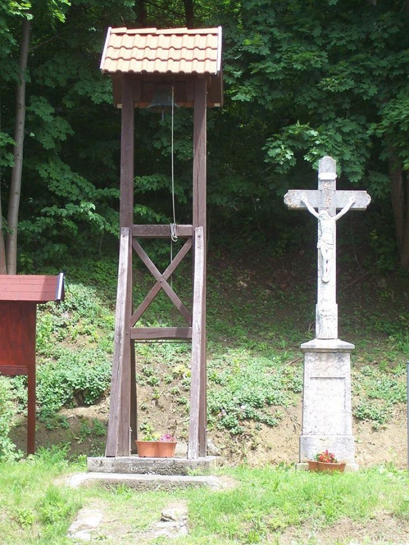 Egy a harangba öntött felirat tanúsága szerint a somhegyiek 1929-ben pénzt adtak össze, hogy abból harangot öntethessenek, amit aztán egy közösen ácsolt haranglábon helyeztek el. Öt évvel későbbi adakozásuknak köszönhetően a harangláb mellé aztán kőkereszt került, melynek felirata a következő: