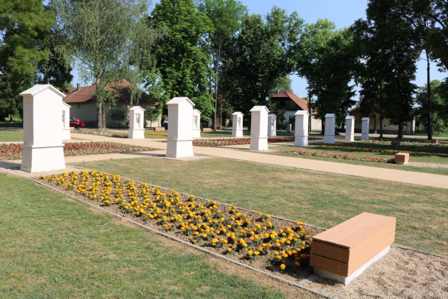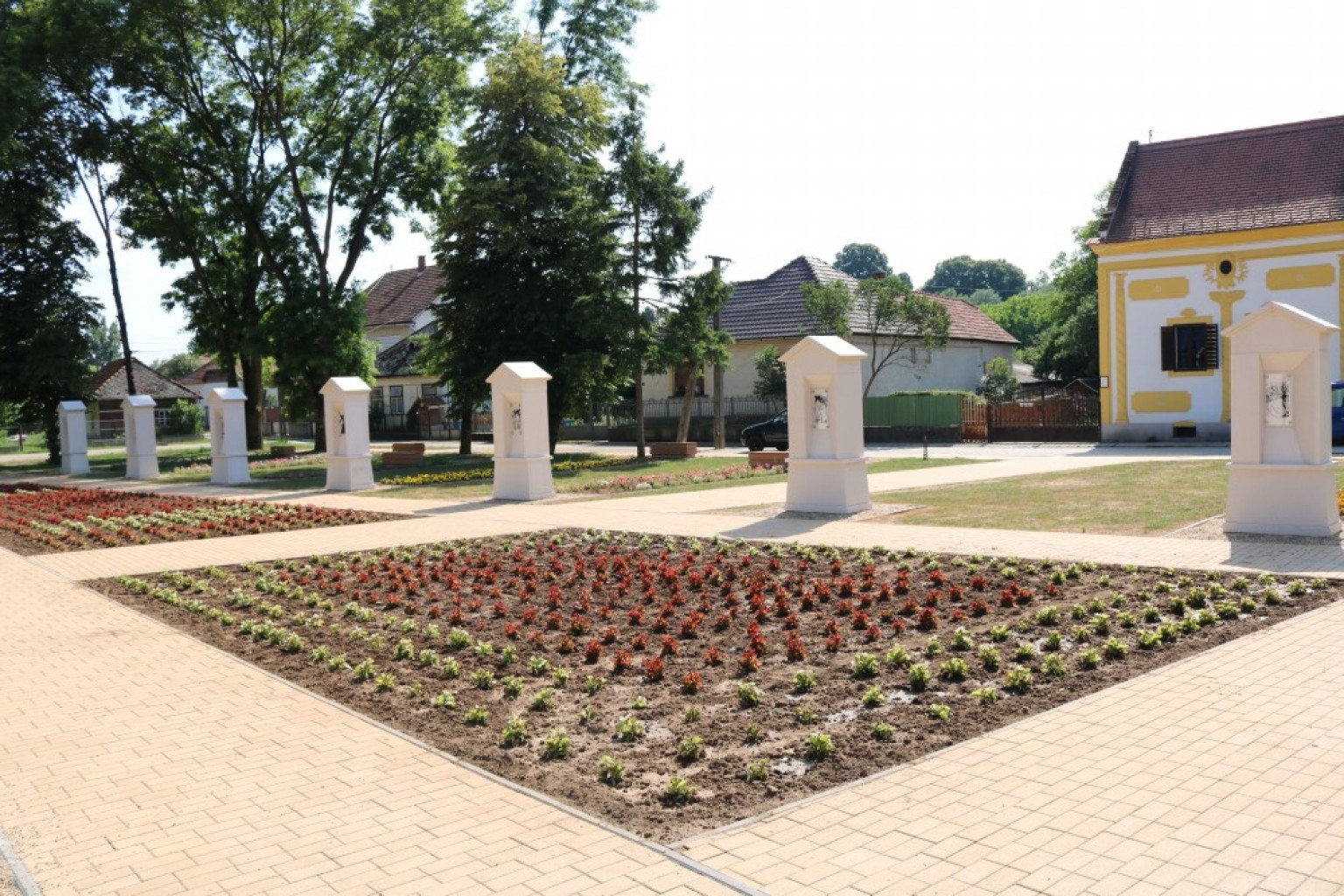A katolikus templom szomszédságában (Szendrő Petőfi tér) került megépítésre a stációkert.