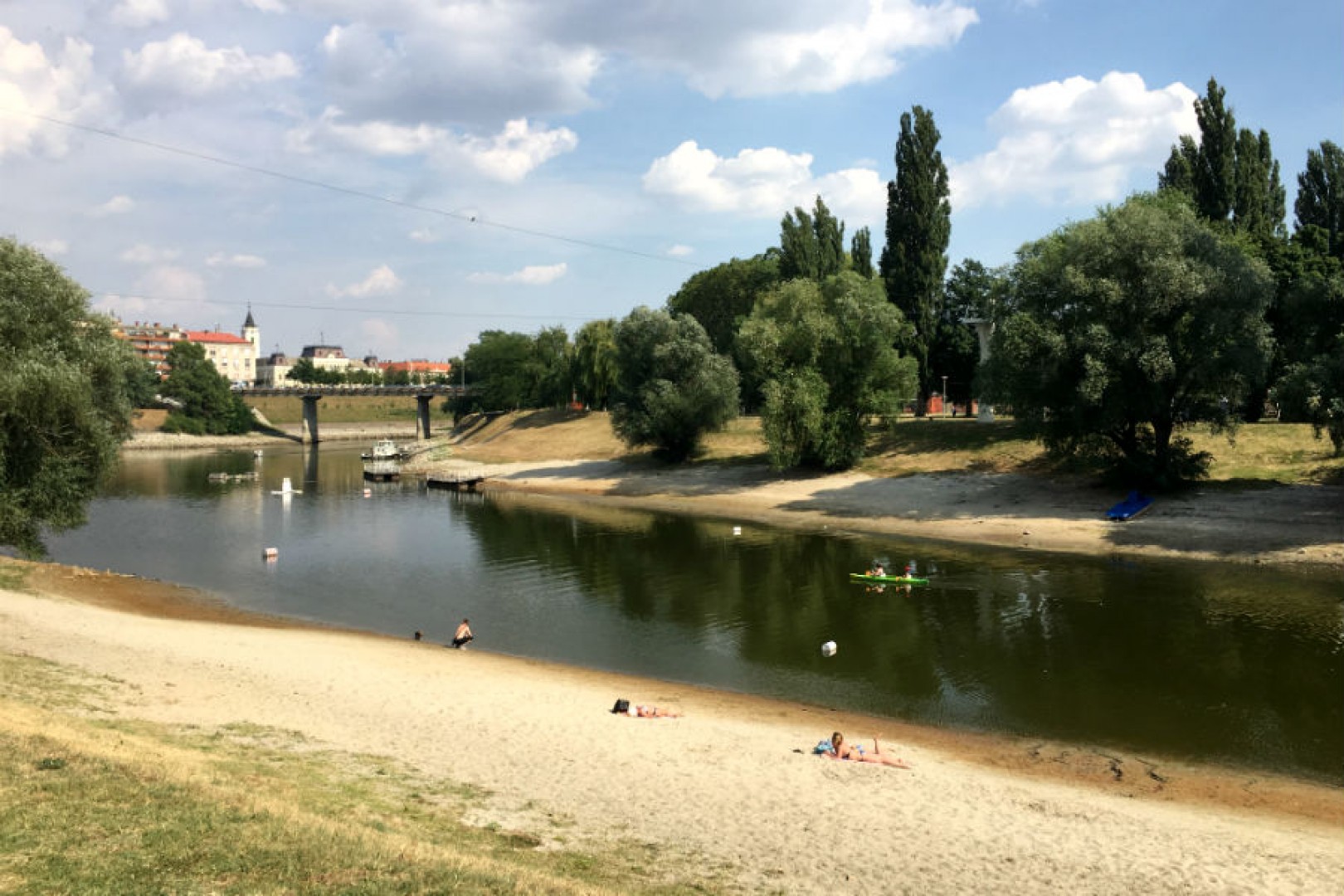 A szabadstrandra a Halászpartról kiépített sétányon lehet eljutni, a túloldal pedig a Sugovica gyalogos és kerékpár hídon átkelve közelíthető meg egy nagyobb sétával.