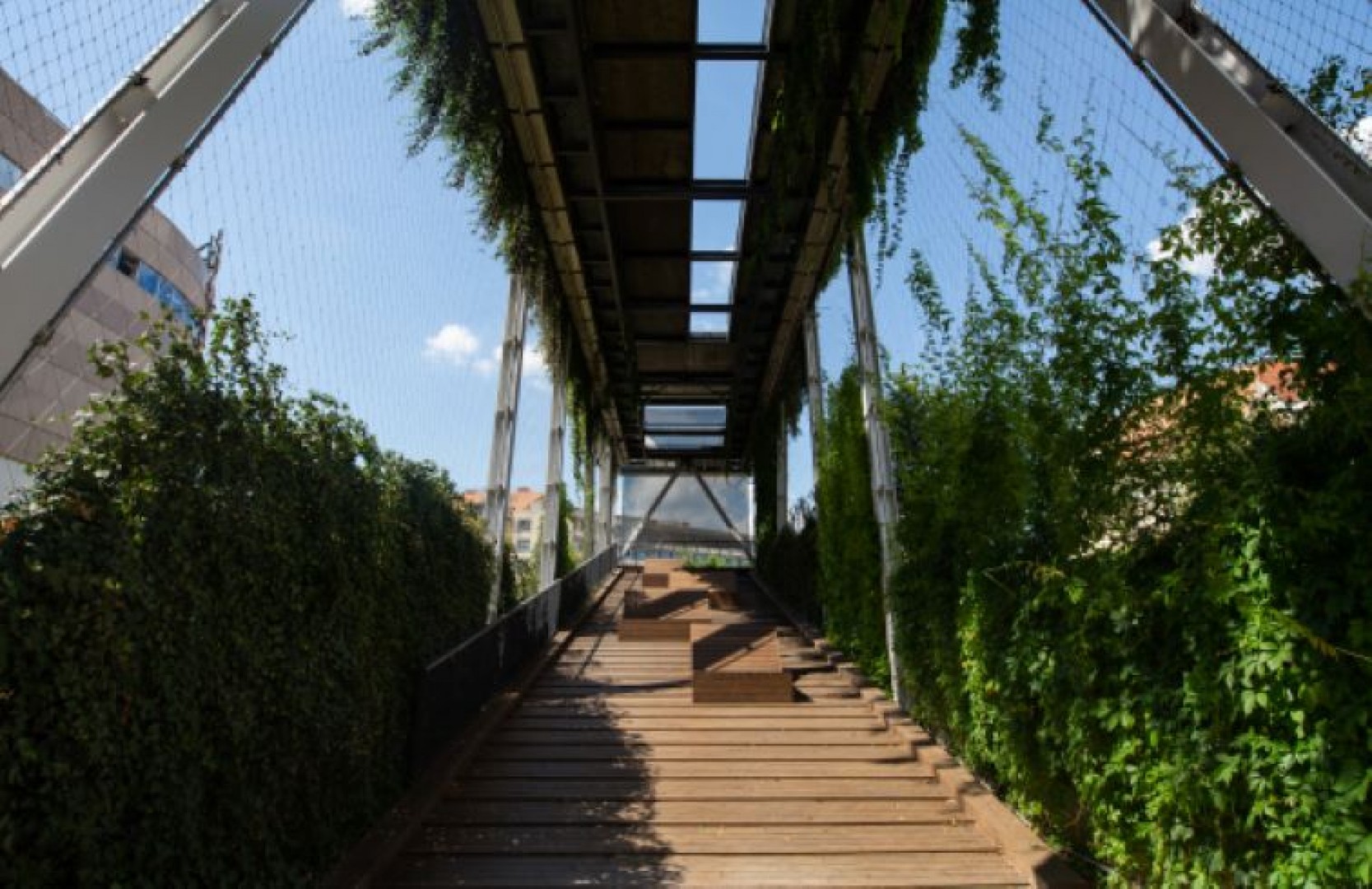 Függőkert: Méreteit tekintve Magyarországon egyedülálló az új parkrészt a „régi” Millenárissal akadálymentesen összekötő, panorámaliftekkel is felszerelt függőkert, amelynek bejárható szintjeiről letekintve pazar látvány tárul a látogató szeme elé. A zöld növényfalak között nemcsak sétálni, vagy forró nyári napokon hűsölni lehet, a függőkert kulturális és szabadidős programoknak, rendezvényeknek is helyet adhat. A masszív acél tartószerkezetre rögzített hálón különböző fajtájú kúszónövények növelik a biológiailag aktív zöldfelületet már jelenleg is további 3000, néhány év múlva pedig mintegy 4000 m2-rel. A park vertikális kiterjesztéseként értelmezhető design növény falakkal számos más helyen is találkozhatunk, így a természetesen zöldtetős felszíni építmények - lépcsőházak, vendéglátó egységek - oldalfalait, és a támfalak egy részét is növényzet borítja.