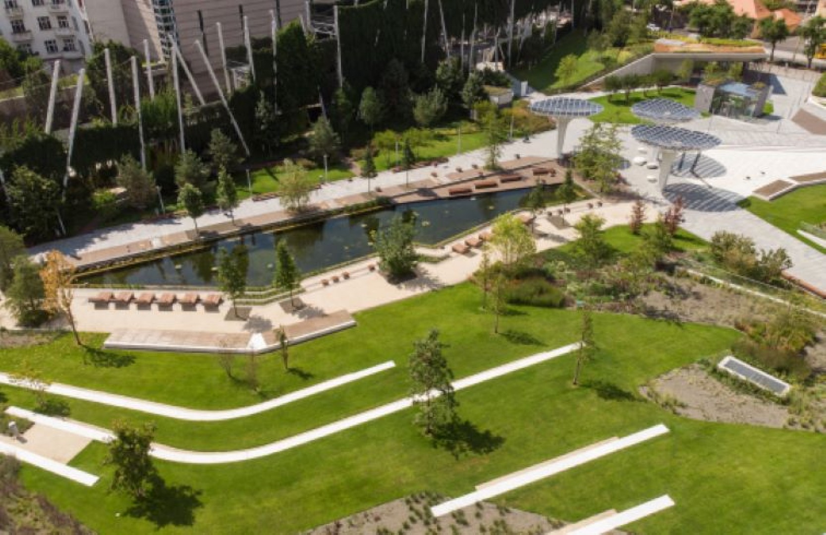A forgalmas Margit körút jobb átszellőzésének, valamint az új park változatos, gazdag növényállományának kedvező klimatikus- és légszennyezés koncentrációt csökkentő hatása javítja a környéken élők és az erre közlekedők életminőségét. A parkban központi szerepet kapott a víz. A közel 700 négyzetméteres tóban vízinövények élnek, a faburkolatú stég és a parton elhelyezett napozóágyak, padok a pihenésre, kikapcsolódásra vágyókat szolgálják.
