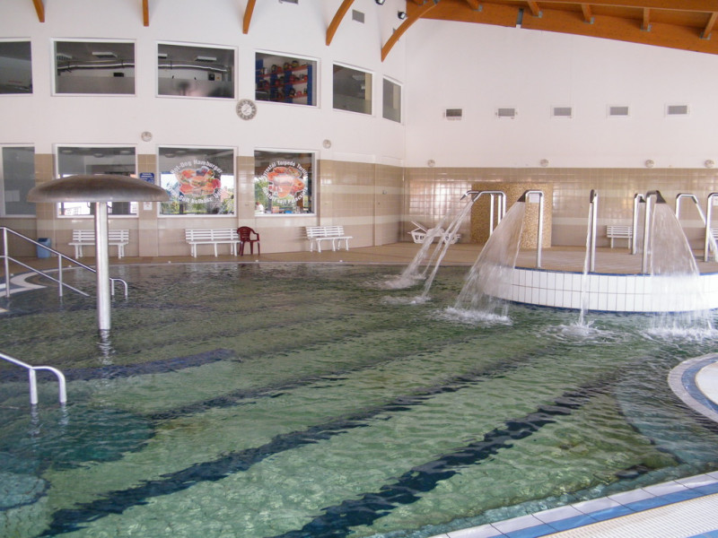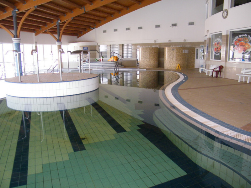 Három fedett (termál medence, vízi óvoda, úszómedence) és egy nyitott medencéjével egész évben folyamatosan fogadja vendégeit.