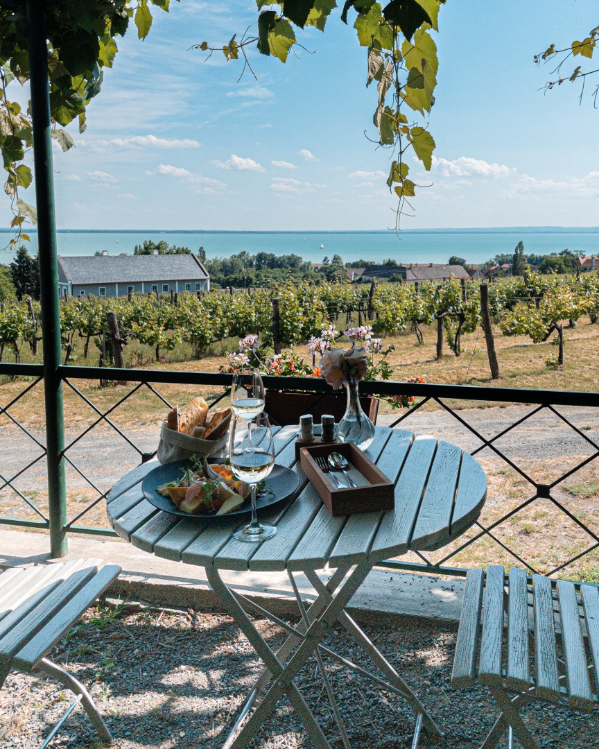 A teraszról csodálatos panoráma nyílik a Balatonra, a szőlőlugas alatt jó elidőzni, a beltér pedig kedves és kényelmes. Az ételek mellé a Laposa Birtok izgalmas, vulkanikus tételeit ajánljuk.