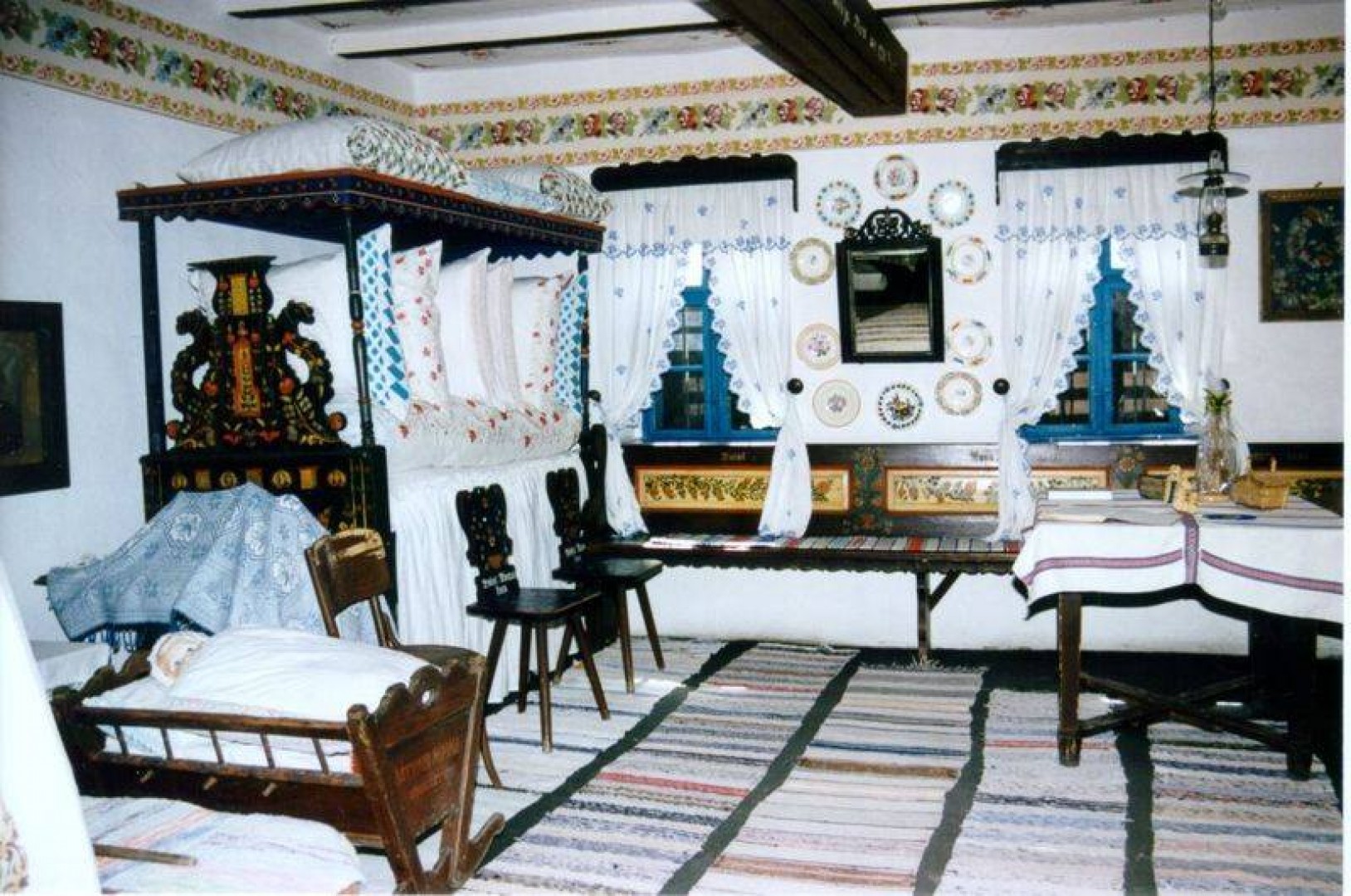 Láthatók: mennyezetes ágy, festett virágos sarokpad, szőtt vagy hímzett törölközők, konyhai sütő- főző edények, fazekak, lábasok, tótkomlósi háziipar termékei, korabeli ruházatok.