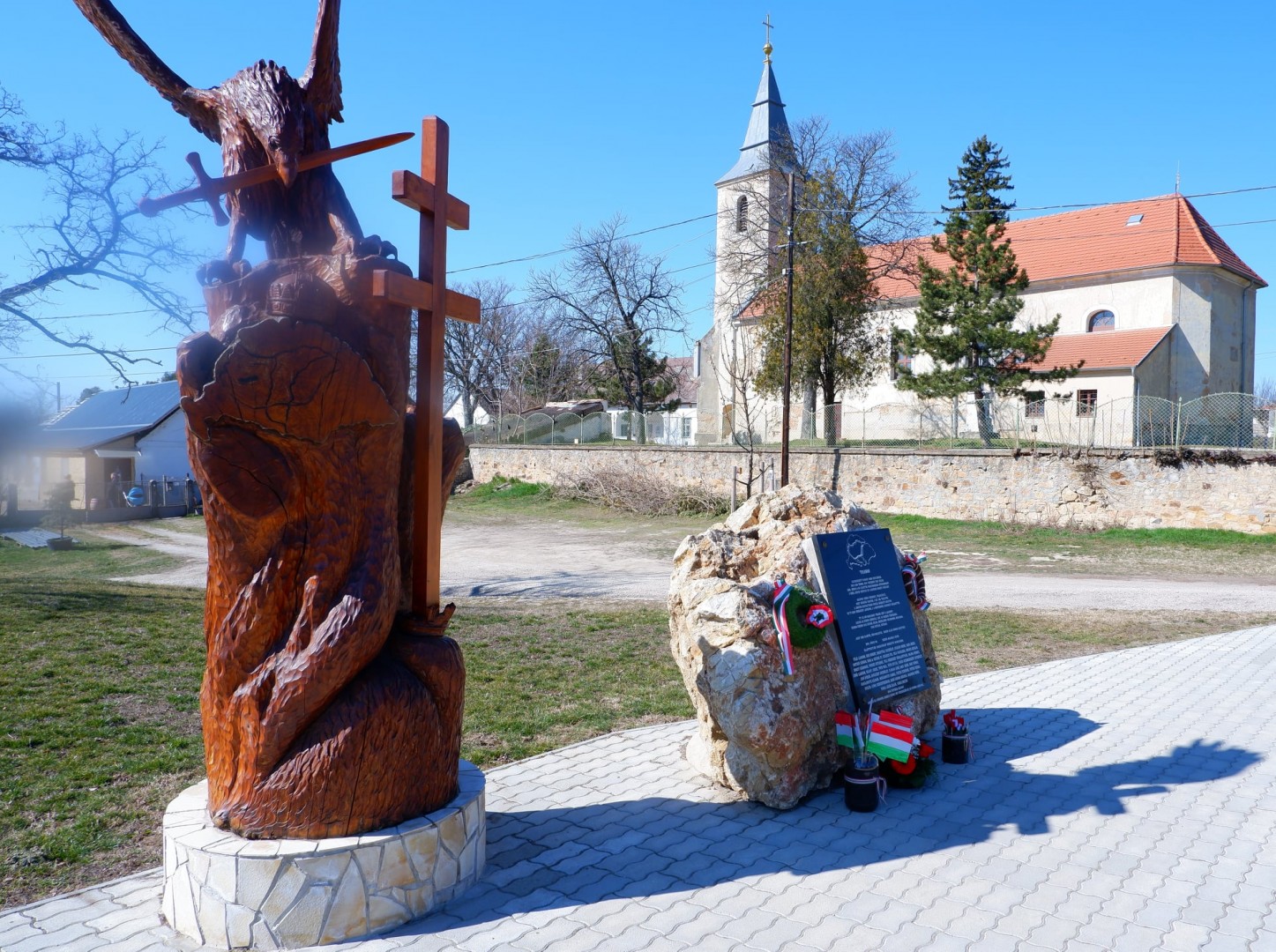 Az emlékmű mellett Bálint József fafaragó mester majdnem 4 méteres Turul madarat ábrázoló alkotása található, melyet egy 100 éves fából lett kiragva.