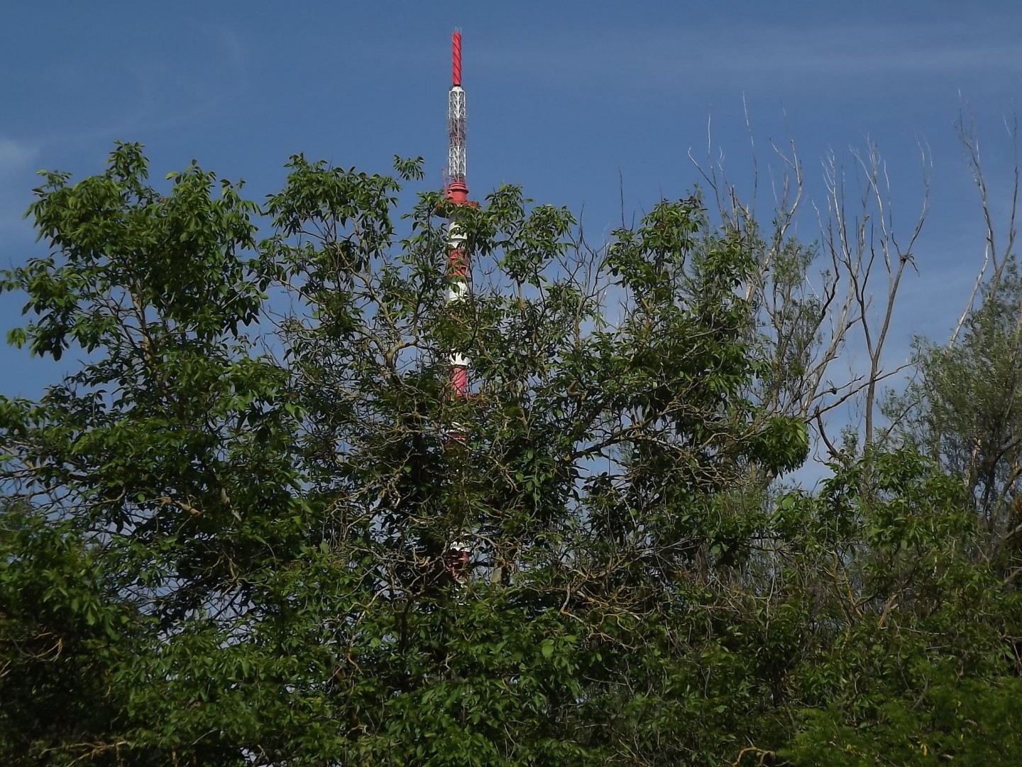 Az adótornyokban mindig van valami misztikus, valami bizsergető, ráadásul gyakran olyan magaslatokon vannak, amiket érdemes meglátogatni. A nagykanizsai (avagy újudvari, nagybakónaki) adótorony is uralja környezetét, megfelelő helyekről pedig (pl. a Balaton-felvidék hegyeiről vagy a Mecsekből) egészen távolról is jól azonosítható pont. A Nagykanizsa/Újudvar adótorony 308 m tszf. magasságon áll a Tukora-tetőn, saját magassága 206 m. Internetes kutatásaim szerint ez hazai viszonylatban jelentősnek számít: magasságával másodikként áll a pécsi torony mögött az ország legmagasabb feszítő-kábelek nélküli építményeinek listáján. A toronnyal kapcsolatban további technikai részletek olvashatók itt. A toronyba nem lehet felmenni, de mivel a dombtetőt nem borítja összefüggő erdő, a közeléből a gerincről egészen szépen belátható a szelíd-hullámos zalai táj, és az ideút is kellemes. Tiszta időben Zágráb hegye és adótornya is látható.