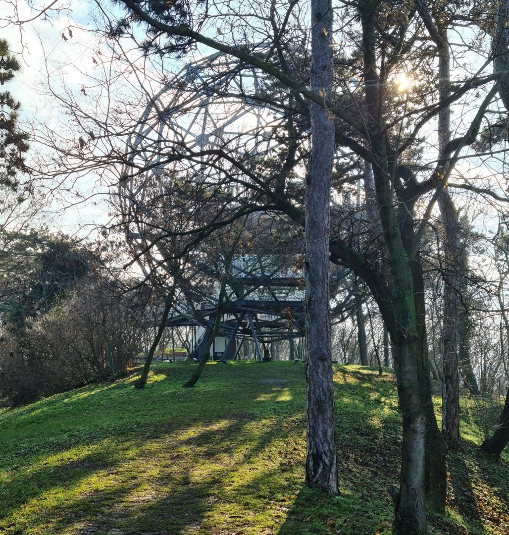 A város jelképévé vált gömbkilátó az egykori BNV ideiglenes látványossága volt, mely az 1958. évi brüsszeli világkiállítást is megjárta "magyar atomium"-ként. A 15 m átmérőjű építményt Kádár István mérnök álmodta meg, melyet a kiállítás megszűnését követően Szabó Kálmán tanácselnök hozott Boglárra. Eredetileg a belső üvegburkolattal tervezték fölállítani, melybe egy panoráma presszót álmodtak a település lelkes elöljárói. Belátva a természeti erők ellenállását (valamint a mende-monda szerint el is tűntek szállítás közben az üvegtáblák) üveg nélkül épült fel a Gömb, s gyors népszerűségét azóta is töretlenül őrzi. Zics László helyi építész ötlete nyomán a város díszkivilágítással látta el a gömbkilátót, ami még a túlsó partról is látható tájékozódási pont. Egy alkalommal egy közepes felújításon már átesett a nyolcvanas években, ami akkor is mint most is hosszú időre zárta el kirándulók csalódott ezrei elől e kedvelt kirándulási célpontot. Többszöri időpontváltozás után 2012 nyarára ismét látogathatóvá ígérte a nagy felújítást végző vállalkozás, melyet be is tartott, a gömb megnyílt a látogatók előtt.