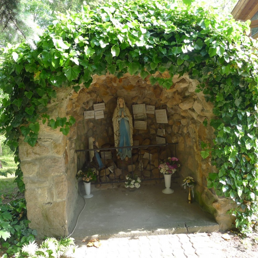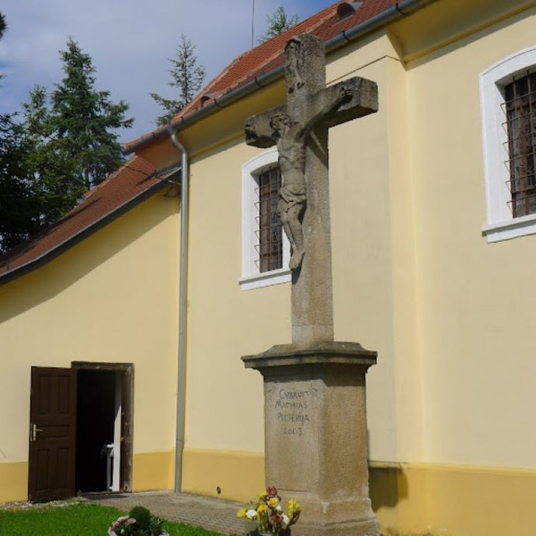 A templomkápolna alatti két kriptában a család tagjai vannak eltemetve. A templomkertben a fák alatt látható egy kis sziklakápolna Szűz Mária szobrával, mely a Lourdes-i barlang hű másolata. A Mária-szobor a kastély kápolnájából került ide az 1950-es években. A templom déli oldala mellett késő barokk stílusú kőkereszt áll, mely szintén műemléki védettséget élvez. Itt látható még két márványtábla is az első és második világháborúban elesett hősök emlékére. A templom épületét 2005-2006-ban EU-s forrásokból és helyi lakosok, vállalkozások adományaiból újították fel.