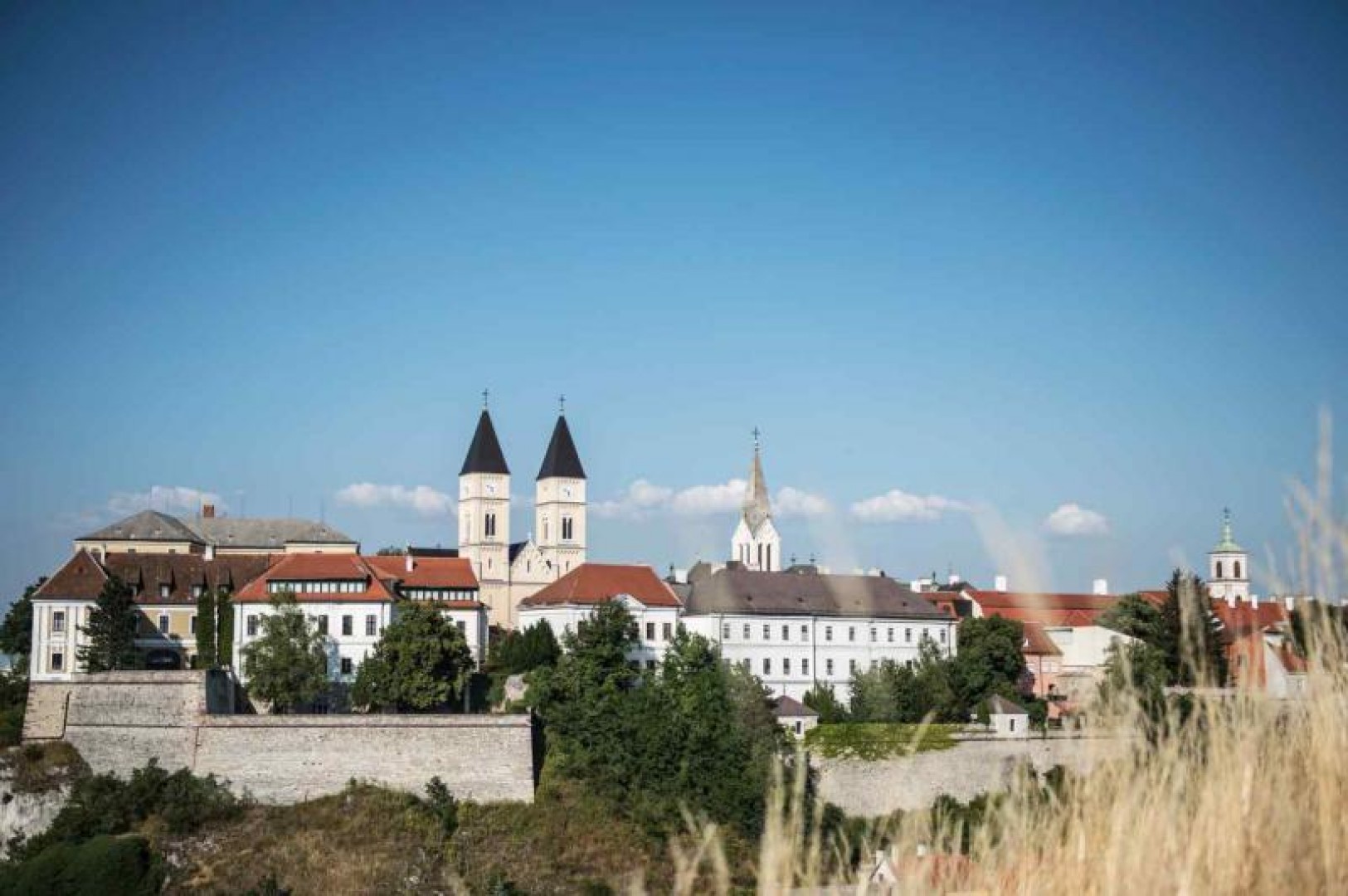 Veszprém városa a Bakony peremén, mély völgyekkel és függőleges sziklafalakkal határolt területen helyezkedik el. Egy, a környező térszínből alig 40 m-re kiemelkedő sziklagerincen emelkedik a hosszan elnyúló, szabálytalan alaprajzú, hozzávetőleg 400 x 100 m-es alapterületű, festői szépségű barokk és klasszicista palotákkal beépített várnegyed, számos egyházi, tudományos és művészeti intézmény otthona, élénk forgalmú turisztikai célpont.